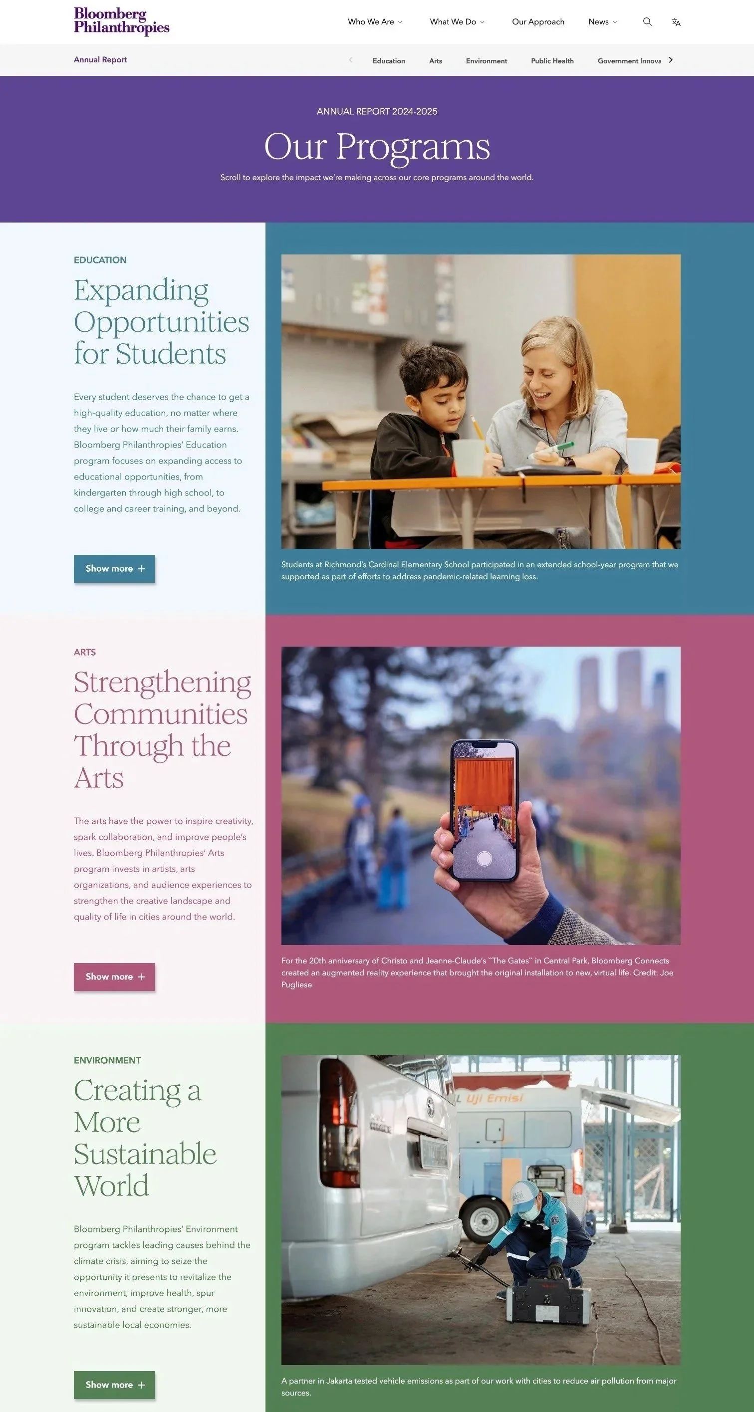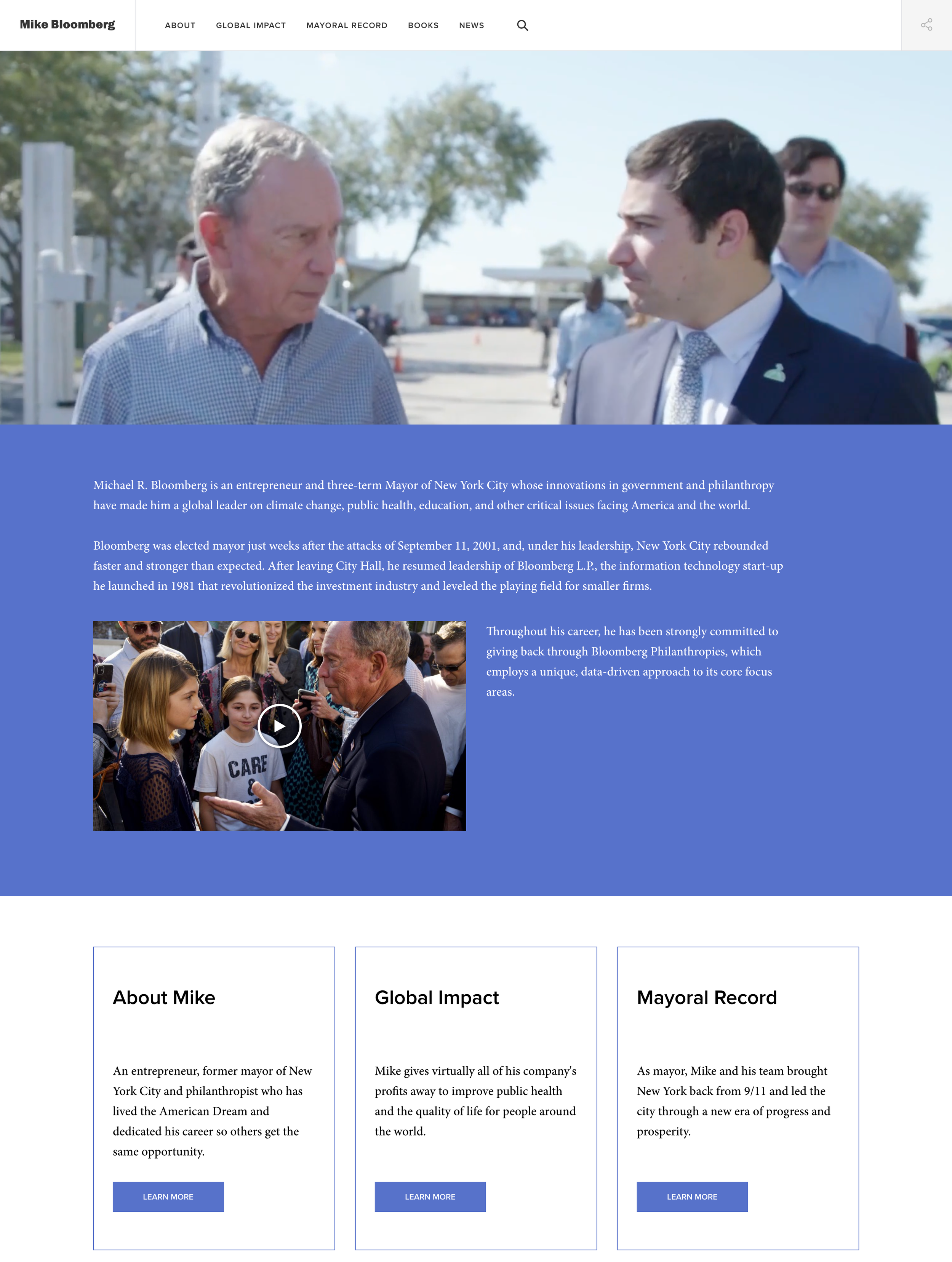 Over the past 7+ years at Bloomberg LP, working on websites for Mike Bloomberg, Bloomberg Philanthropies, and climate initiatives.